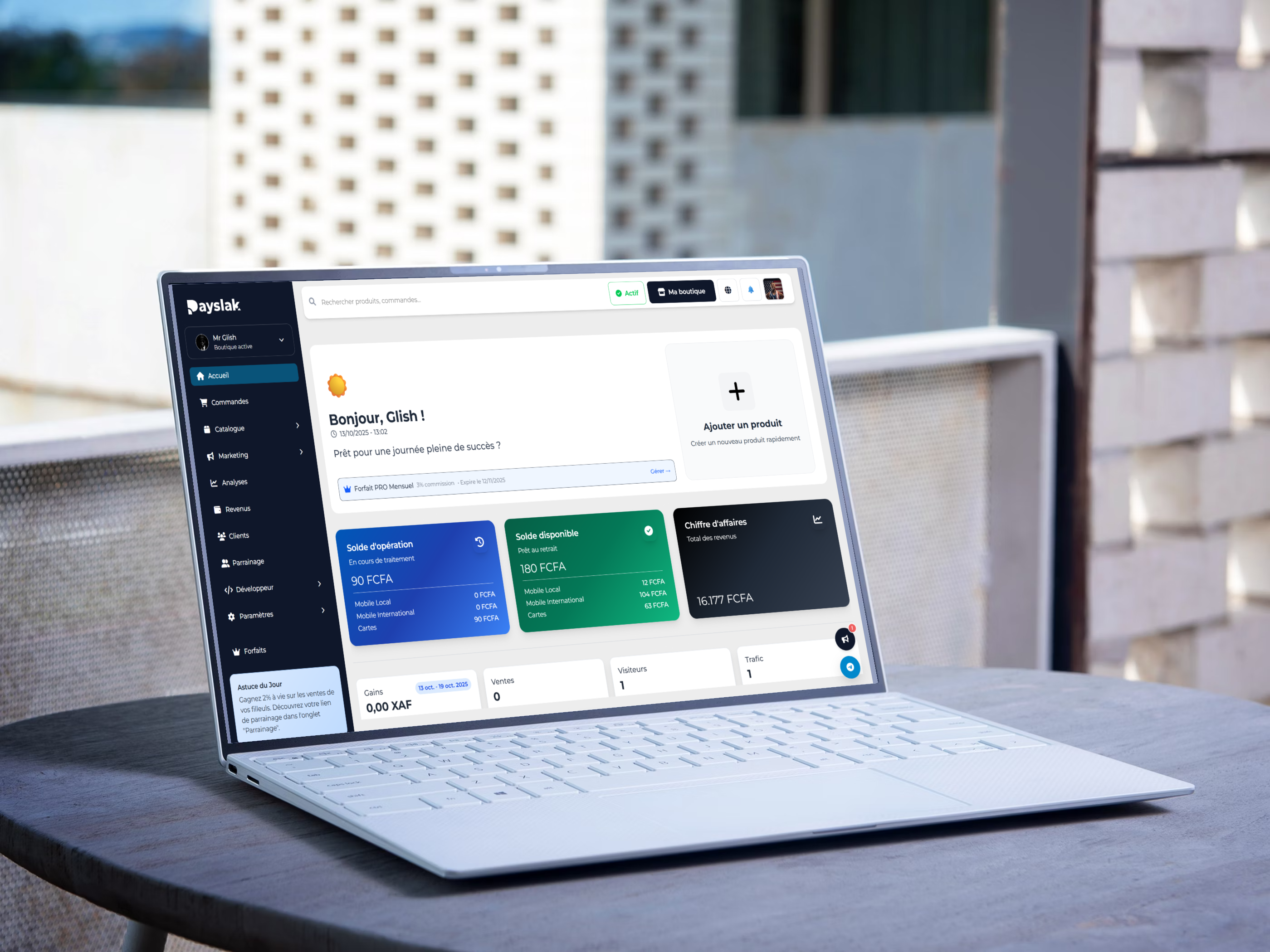 Lancez votre activité de vente en ligne en quelques minutes et commencez à générer des revenus immédiatement. Payslak est la solution tout-en-un qui permet aux entreprises de vendre des produits et services numériques à travers 13 pays africains.
